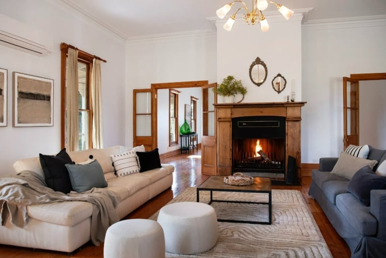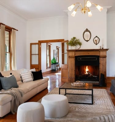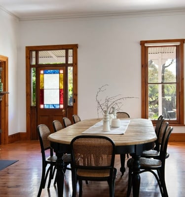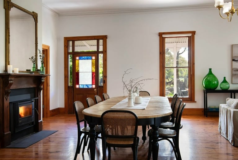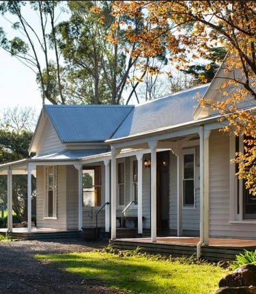 Located in the picturesque region of Daylesford, is our stunning homestead accommodation that is rich in history and character. First settled in the mid 1800s, this elegant colonial style homestead now spans approximately 38 squares and sits proudly at the entrance to its 1800 acre farmland estate.