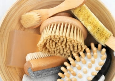 Dry brushing techniques are used followed by lighter soothing massage strokes to encourage lymph movement
